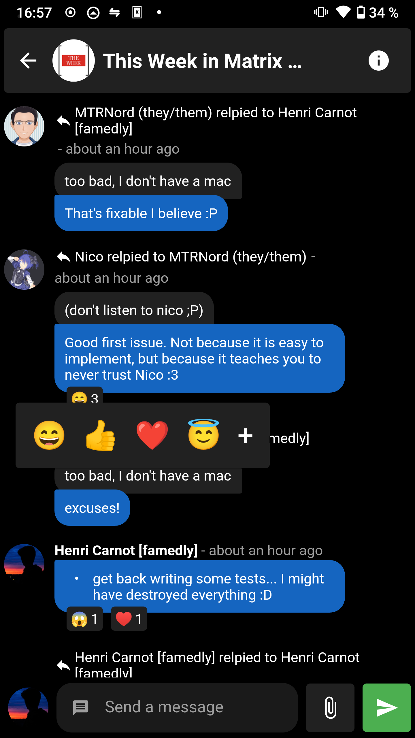 On the ElementX front we're nearly done with the DevX setup and are working towards using the latest Rust SDK