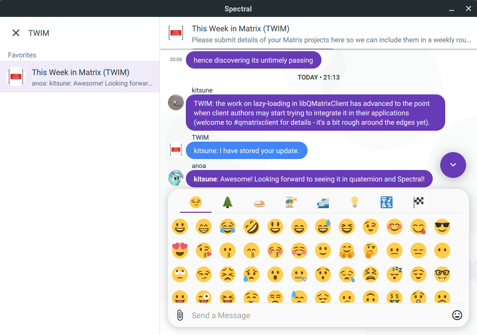 Performance improvements have been marked, in some contexts we have seen 50% reductions in RAM and CPU usage. Here are some illustrative graphs to get you going but look out for a dedicated post delving into much more detail on the port. You can also see a Matrix Live interview with the project lead Amber (hawkowl) here.